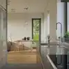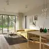 V1-modellen är funktionell i varje kvadratmeter av ytan. Vardagsdelen av huset med ett ljust vardagsrum, matsal och öppet kök, designades på bottenvåningen i byggnaden för att kunna njuta av utsikten från panoramafönstren så mycket som möjligt. Den mer privata delen är placerad på husets andra våning. Hushållets privata område består av tre sovrum, en garderob och ett badrum.